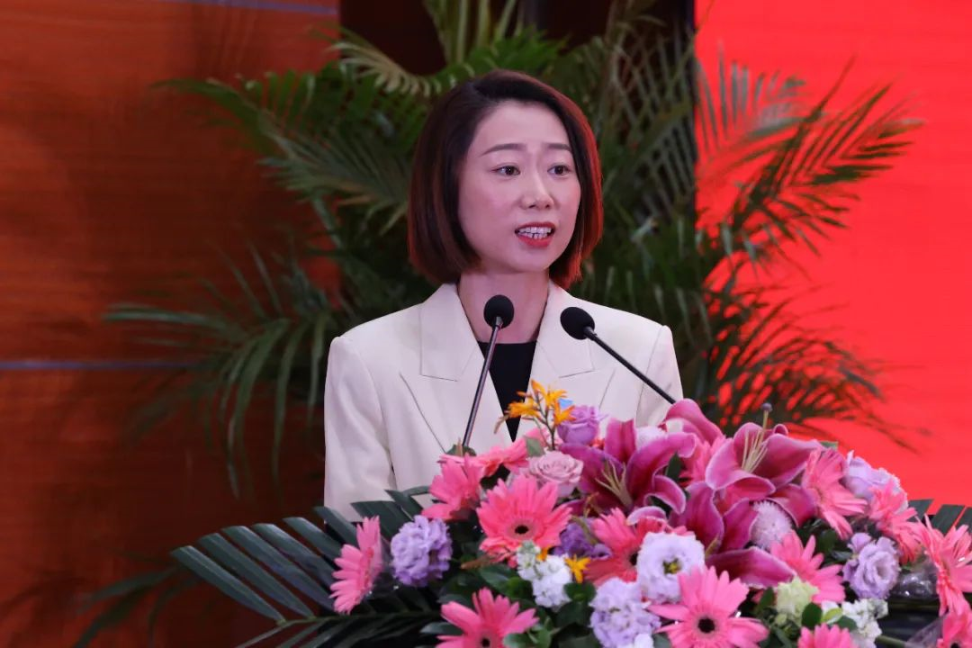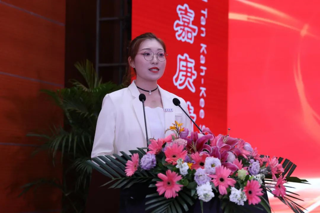 2006级中美合作办学库克项目校友、龙岩市龙合智能装备制造有限公司董事长杨静,2019级中美合作办学项目学生隋希瑶分别作为校友代表和在校生代表发言。