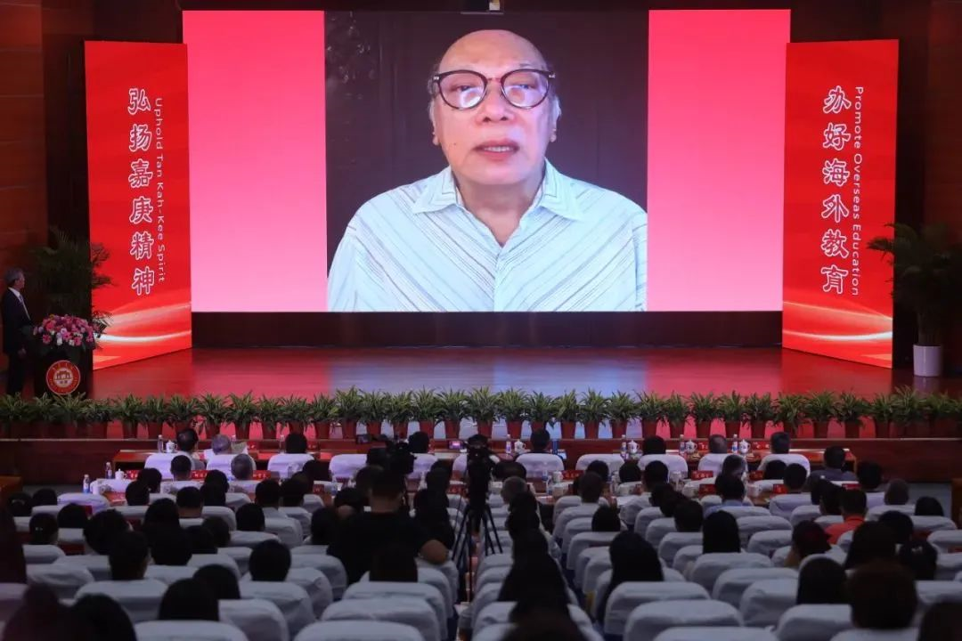 陈嘉庚先生长孙陈立人先生视频致辞。他说,祖父一生心系祖国,坚持弘扬中华文化和民族精神,一直是后辈的骄傲和榜样。他为集美大学海外教育事业在新时代蓬勃发展感到欣慰和振奋,并代表嘉庚后裔诚挚祝福集美大学海外教育事业再接再厉、再续辉煌。