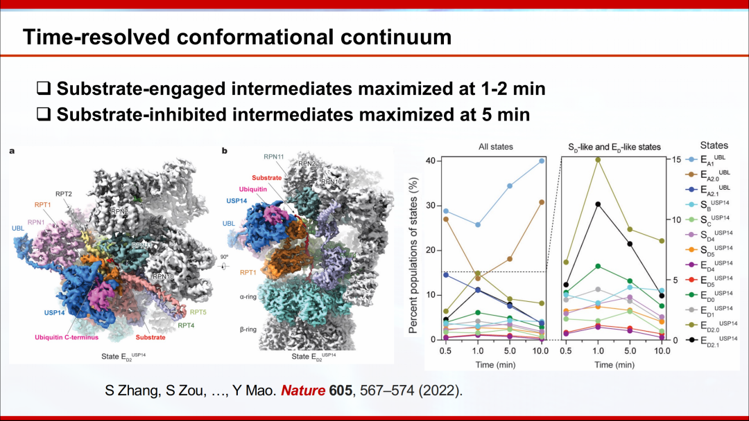 回顾自己的科研之路,毛有东最为欣慰便是通过结合4D或时间分辨冷冻电镜与人工智能算法,发现了人类蛋白酶体全酶超大分子机器的内部运作原理及其在原子水平的动态调控和重编程机制。每一个生命都是一台台最精密的仪器,不容半点差错。在毛有东眼中,科学的哲学本质是当一个科学结论或定律被发现在某种程度上有一丝偏差或错误时,“证伪”本身及对定律失效背后机制的深入理解,往往会带领科学家开启新的篇章。