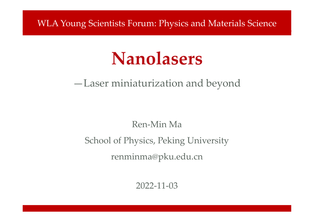 马仁敏,北京大学长聘副教授,国家杰出青年基金获得者,科学探索奖获得者。发表的工作包括Nature/Science 3篇,Nature/Science子刊11篇,PRL 2篇,被引用9000余次。研究成果入选2018美国物理学会Physics年度重点成果、2018和2020中国光学十大进展、2020中国半导体十大研究进展、2020中国百篇最具国际影响学术论文。研究方向为微纳激光物理与器件、光与物质相互作用和非厄密与拓扑光子学。