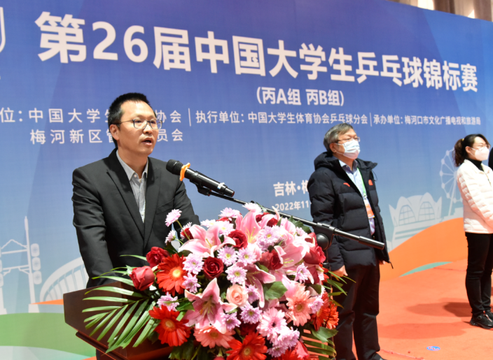 中国大学生体育协会乒乓球分会拟任秘书长、我校体育系系主任王坤教授致辞
