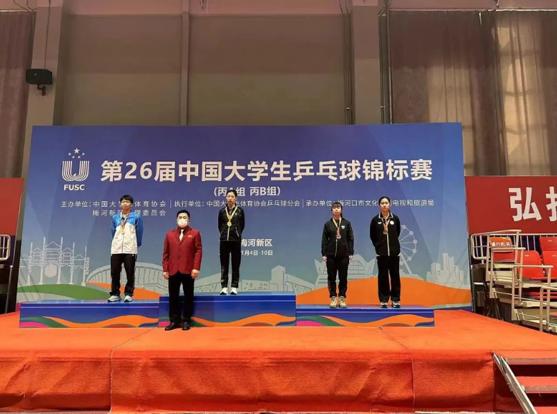 在11月5日至7日进行的两个组别团体比赛中,李佳琪、林昕悦、姜思宇战胜北大获得女子丙A组团体冠军,在其他三个团体比赛中,我校学生敢打敢拼,顽强拼搏,最终获得亚军。在11月8日至10日进行的两个组别单项比赛中,我校高水平乒乓球运动员们延续了团体比赛中敢打敢拼、奋勇拼搏的精神,克服了高强度比赛所带来的疲劳,展现出了我校学子阳光、自信、奋发的赛场风貌。最终,施宇/苗磊获得丙B组混合双打冠军,徐望晗/肖杨惠民获得丙B组男子双打亚军,张庭翌获得丙A组男子单打亚军,林昕悦获得丙A组女子单打季军,苗磊获得丙B组女子单打季军。
