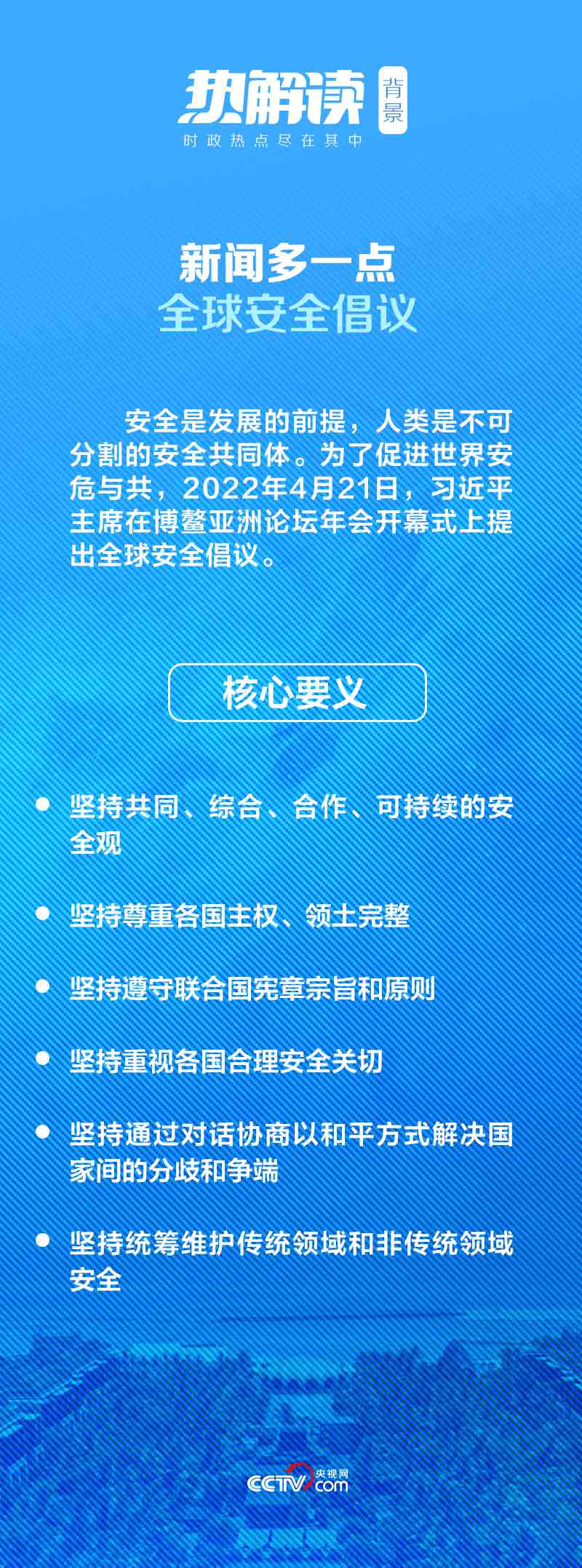 本次峰会上,习主席进一步明确阐释全球安全倡议的目的——同大家一道,弘扬联合国宪章精神,本着安全不可分割原则,坚持共同、综合、合作、可持续的安全观,倡导通过谈判消弭冲突,通过协商化解争端,支持一切有利于和平解决危机的努力。