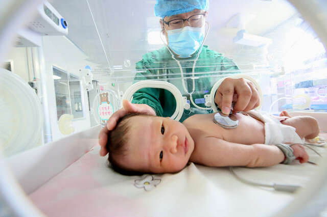 8月18日,河南省洛阳市汝阳县妇幼保健院医生在新生儿监护室工作。新华社图