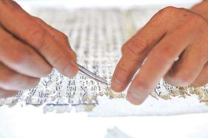 古籍的“病症”,每一种都不好对付。有些几乎褶皱成一团的书叶,修复师们要耗费一整天甚至几天来慢慢展平修复,哪怕一片小小的纸屑都要小心整理分析,努力归位。为选择修复纸张和实现染色效果,他们反复地讨论、试验,甚至尝试遵循古法,严格按照中国传统的手工造纸技术自己抄造纸张。
