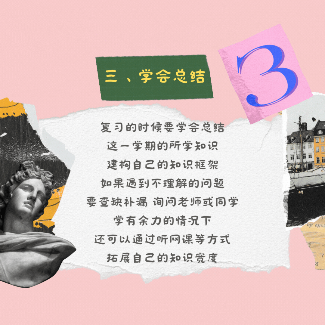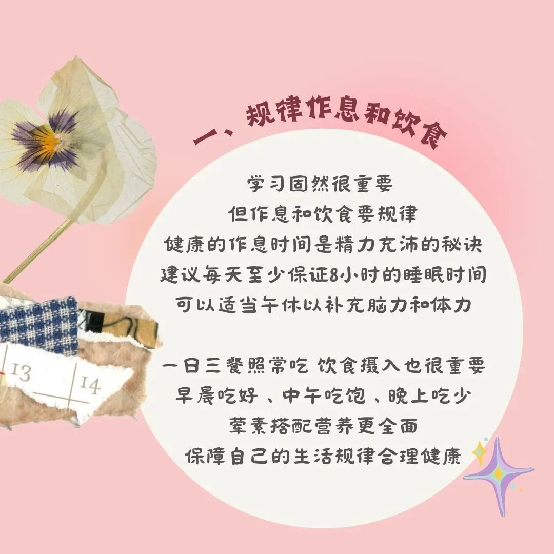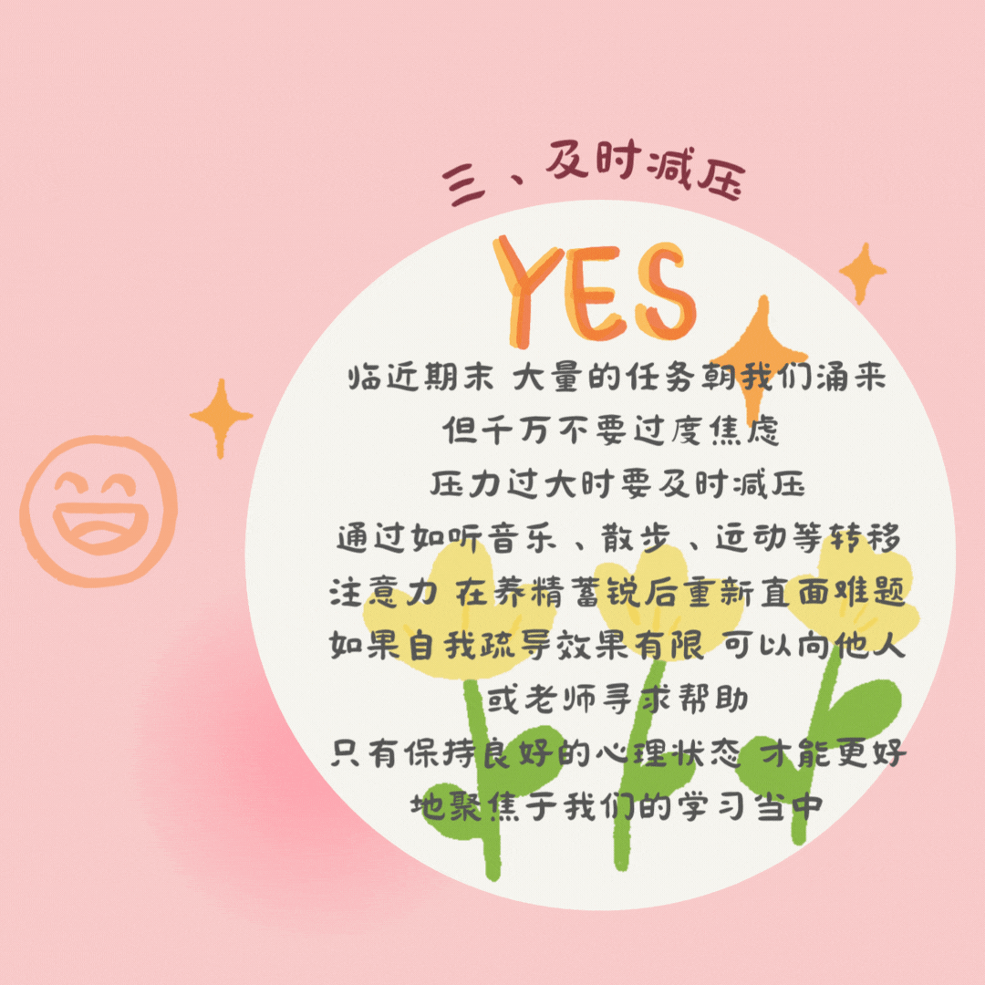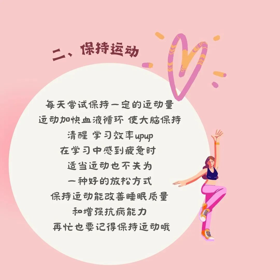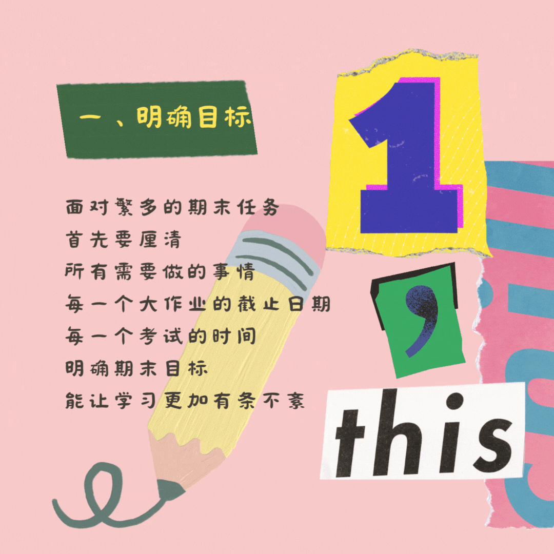 看完这个期末月生存指南,相信你一定了解了在为期末月做准备时,明确学习目标、制定计划和进行知识总结,在生活中规律作息和饮食、保持运动和及时减压这几点的重要性。