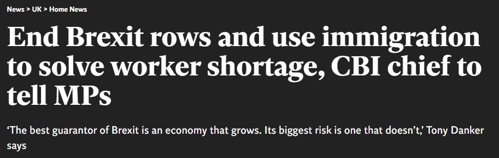 他呼吁英国政府考虑发放定期签证,以解决英国企业劳动力不足的问题,“在那些短期内无法获得国内劳动力和技术人才的地区,我们需要经济移民……人们反对移民,但这是自3月以来唯一能推动我们经济潜在增长的事情。”