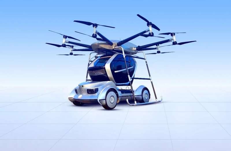 飞行汽车最大起飞重量650千克,有6涵道和开放式8轴16旋翼两种构型,净载重280千克。该车拥有超轻量化的座舱及内饰设计,自重80千克,前后排2座布局,实现高效空间利用及空气动力学优化设计,具备飞行汽车驾驶人机交互操作系统,智能感知传感器引导座舱分别与底盘或飞行器对接,实现地面行驶、空中飞行模式切换。