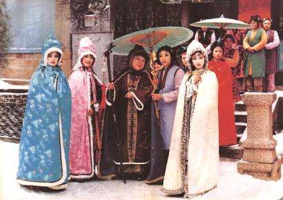 《红楼梦》描写了宝黛钗等人于农历十月里头场雪时,在大观园芦雪广饮酒赏雪吟诗的名场面。图为相关场景剧照