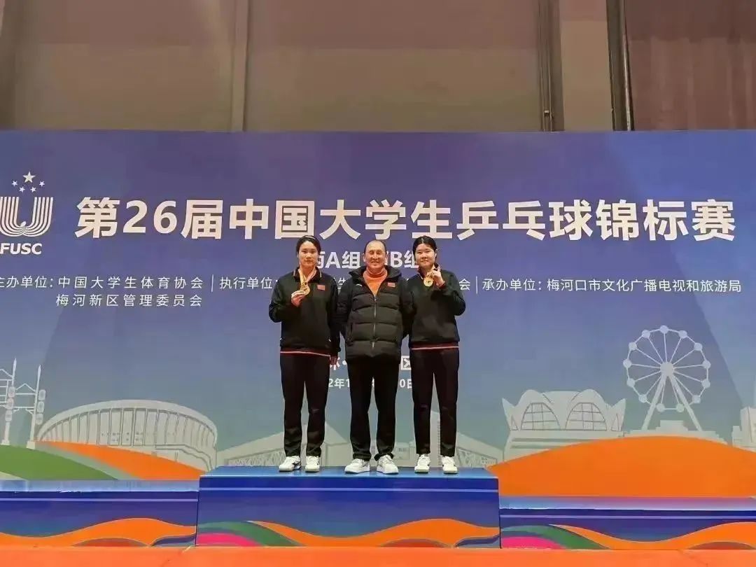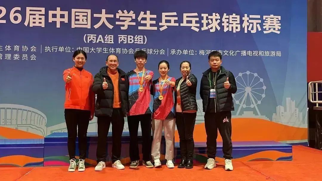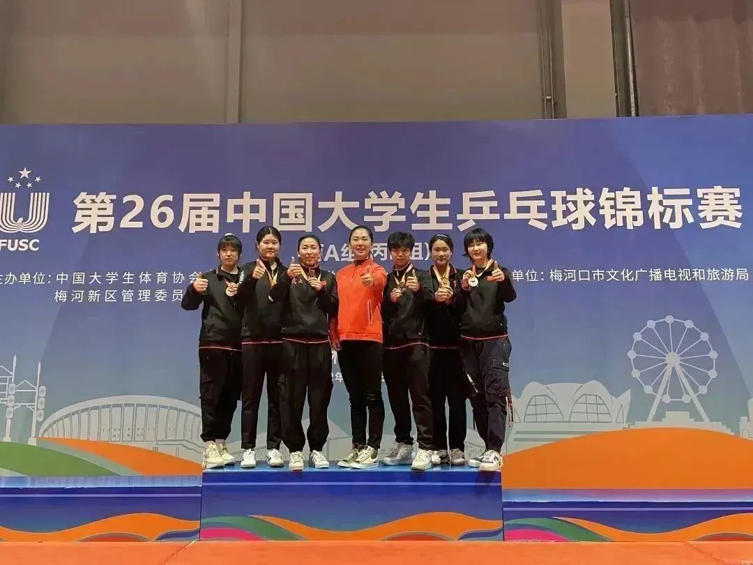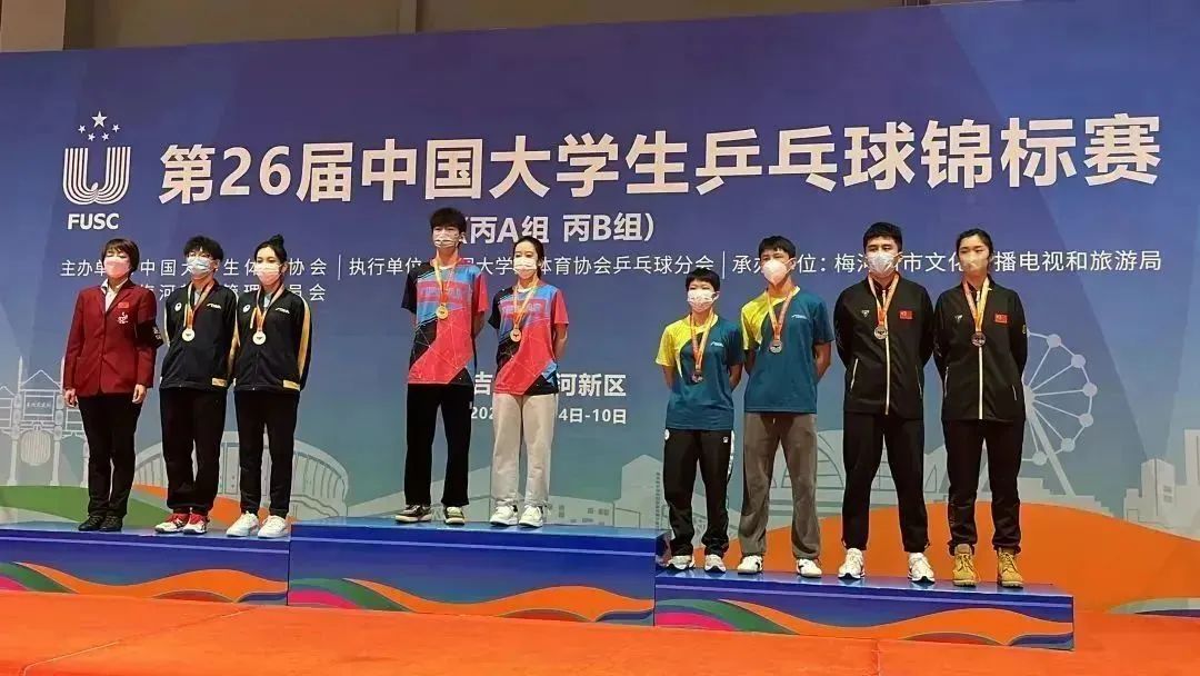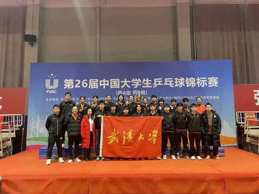 近日,吉林梅河口,在成慧君领队和汪杰、杨博宇、李宜珊三位教练的带领下,武汉大学乒乓球高水平运动队男队丙A组/丙B组、女队丙A/丙B组共20名队员,代表武汉大学参加第26届中国大学生乒乓球锦标赛丙组比赛。经过6天激烈角逐,运动健儿们共为武汉大学争得2金1银2铜,女子团体丙A组荣获全国第三名,男子丙A/丙B组团体在比赛过程中的表现也可圈可点,敢打敢拼,斩获全国第五的佳绩。