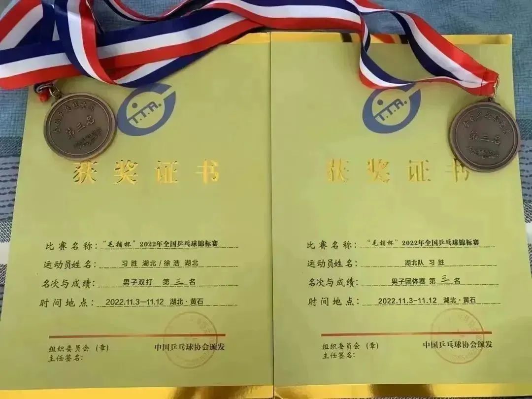 11月11日,在全国乒乓球锦标赛男双项目的赛场上,湖北省乒乓球队注册运动员、武汉大学哲学学院在读研究生习胜作为代表队员之一,也为湖北队摘得铜牌,创造了2018年以来湖北乒乓球男双项目最佳战绩。同时,习胜所在组合更是唯一一组战胜国家队组合进入4强的选手。