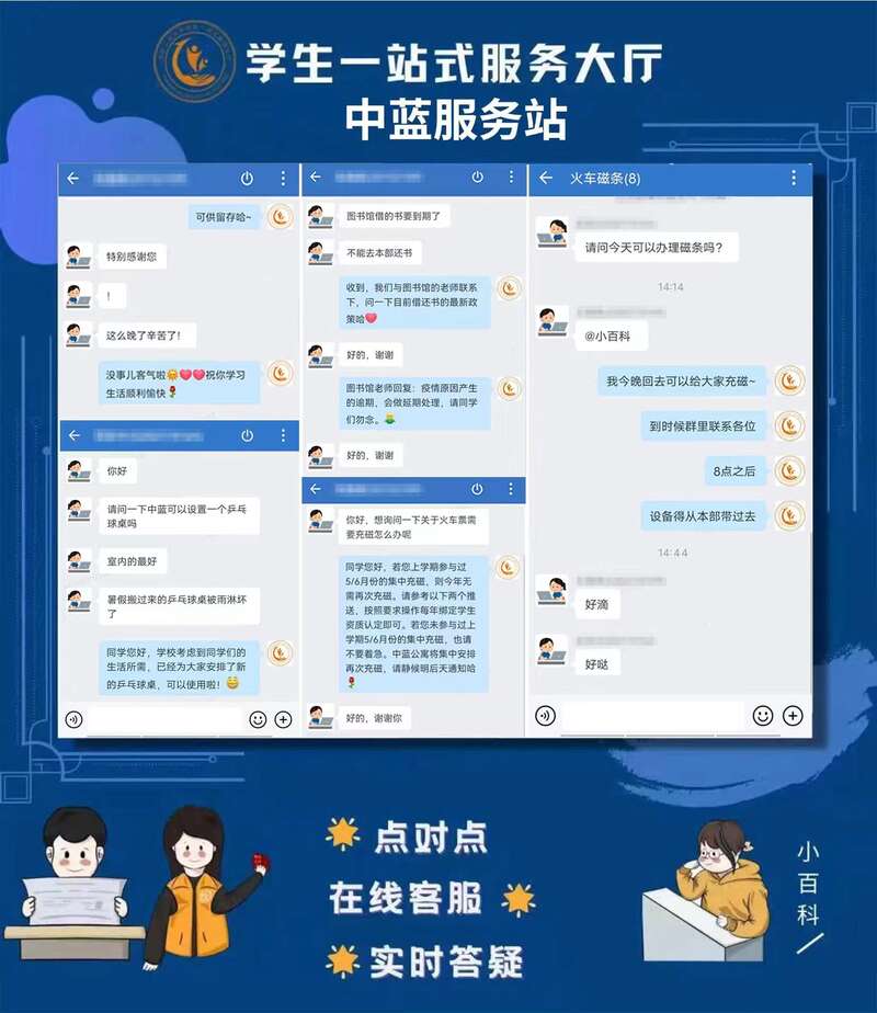 北京工业大学“中蓝校区”了解学生诉求与困难,构建体系化诉求收集反馈渠道,线上开通企业微信实时问答平台,第一时间给予回应;线下继续完善推进楼长接待制度,楼长、辅导员主动深入了解。
