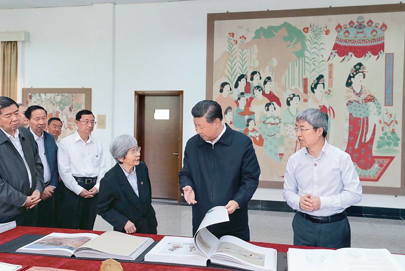 在敦煌研究院同有关专家、学者和文化单位代表座谈时,他对“研究和弘扬敦煌文化”提出具体要求:“要揭示蕴含其中的中华民族的文化精神、文化胸怀和文化自信,为新时代坚持和发展中国特色社会主义提供精神支撑。”