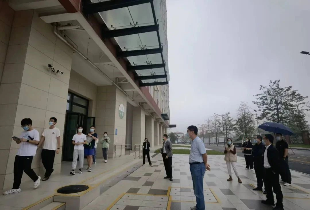 25日下午疫情防控专班成员和各院系老师们到东园七栋楼下迎接同学们