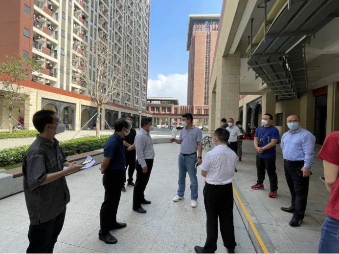 17日深圳市教育局,光明区区委常委、副区长、区疫情防控指挥办主任姚高科,区委常委、副区长沈华新分别率队到现场指导
