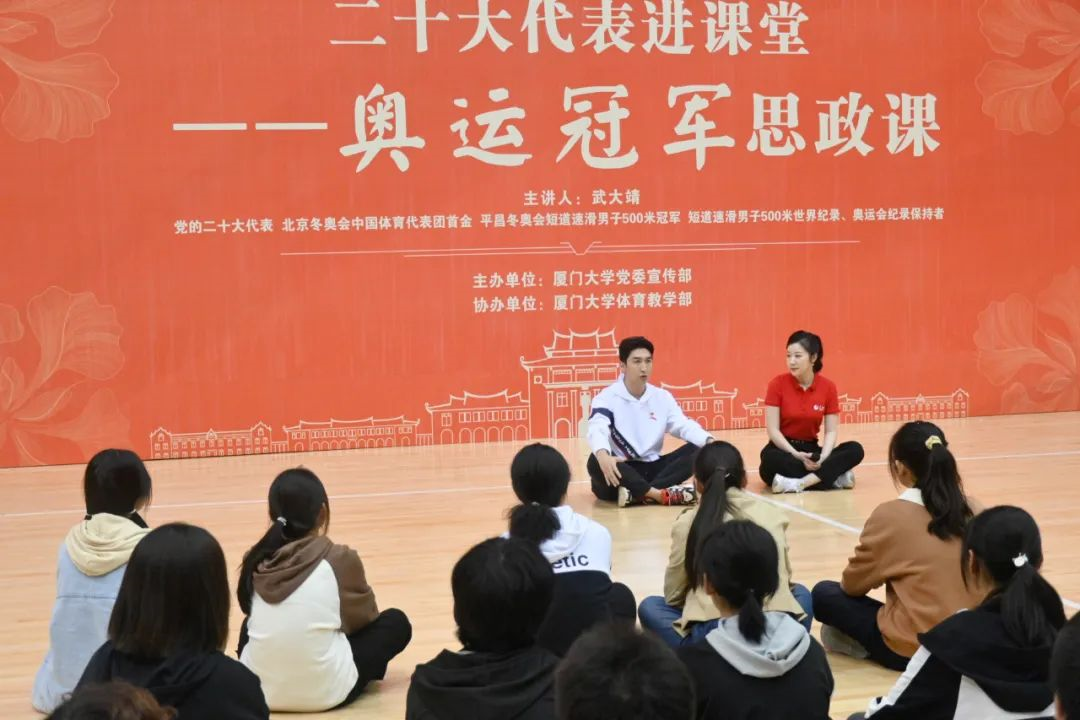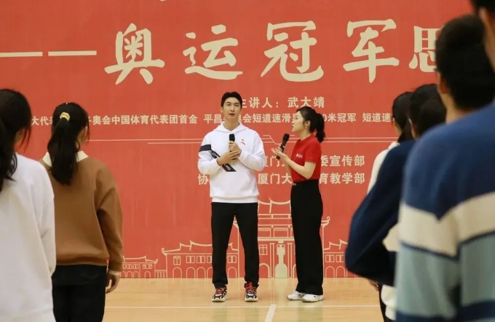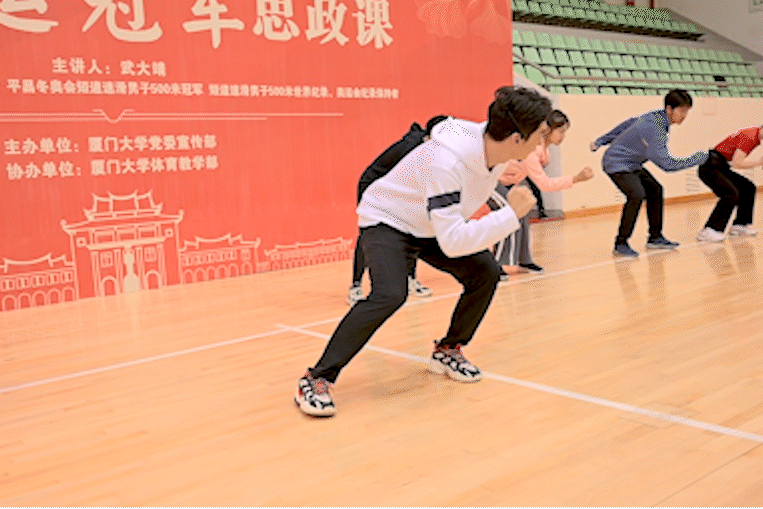 我是厦大舟艇队的一员,平时也有因疲惫而懈怠的时候。但今天大靖老师说“作为运动员,放弃就是不称职的”让我印象太深了,他艰苦奋斗的精神和励志的故事也将激励我。