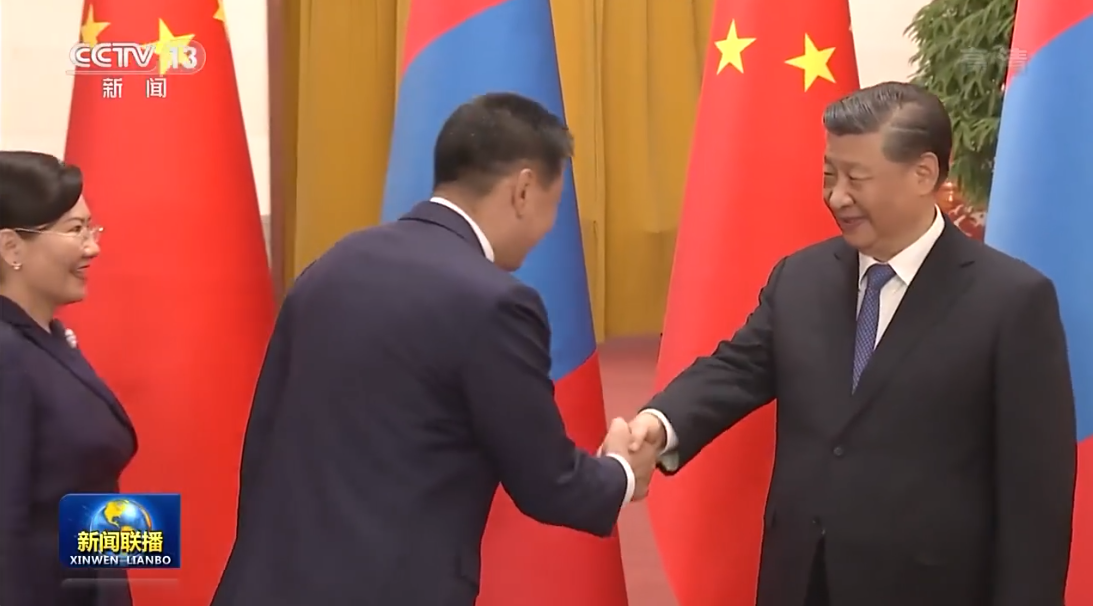 国家主席习近平28日下午在人民大会堂北大厅举行仪式,欢迎蒙古国总统乌赫那·呼日勒苏赫对我国进行国事访问。
