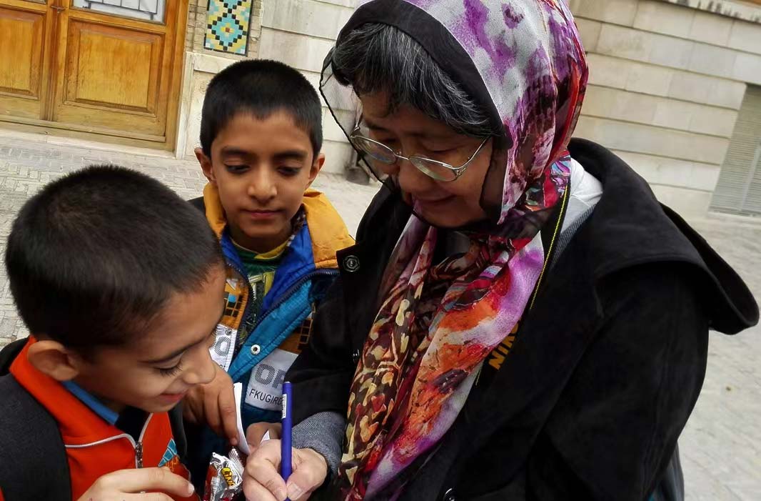 被伊朗孩子索要签名。