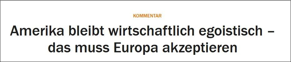 《商报》:美国在经济上依旧很自私,欧洲必须承认这一点