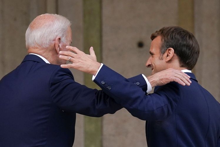 2021年10月,马克龙和拜登在核潜艇事件后首见。图自IC Photo