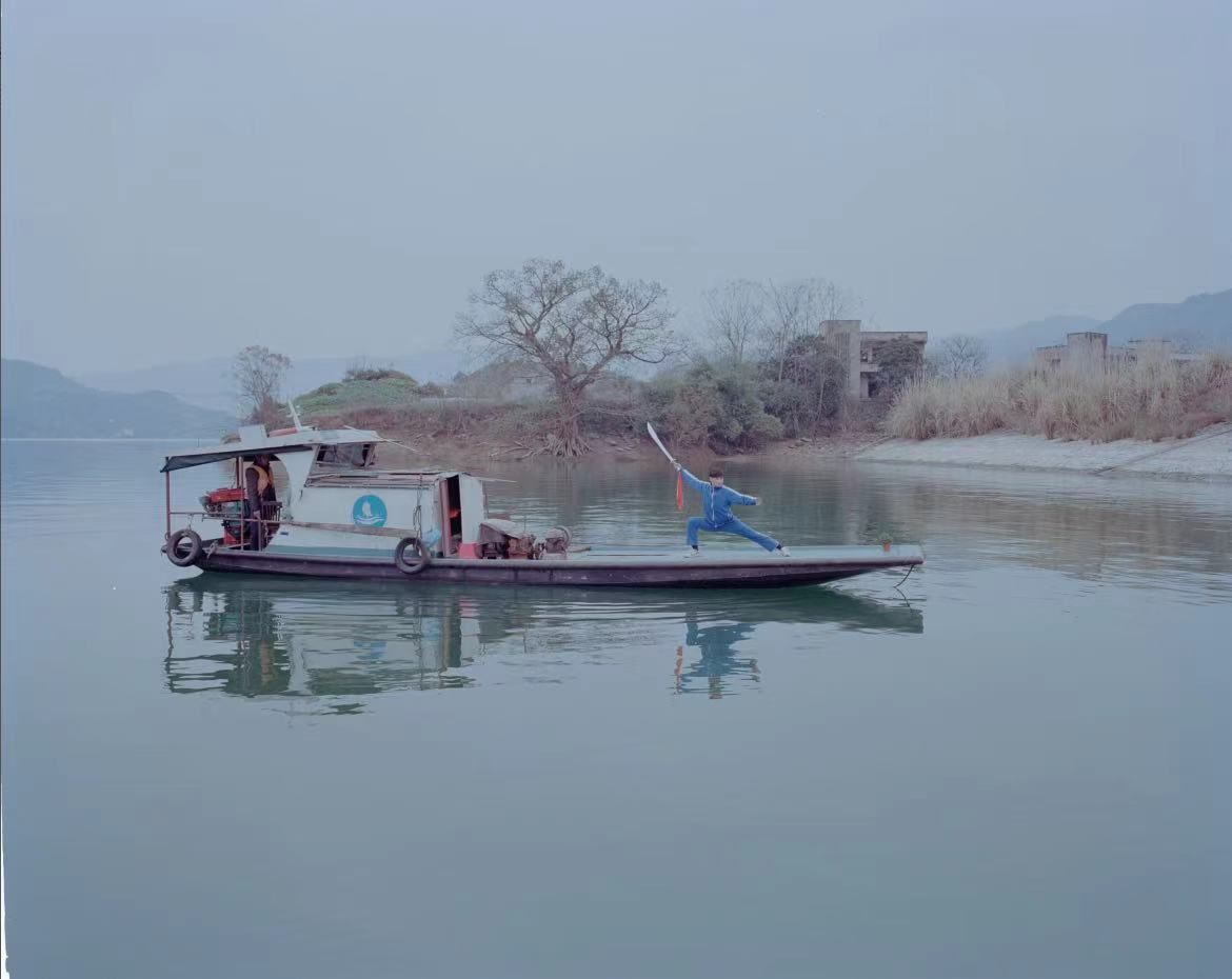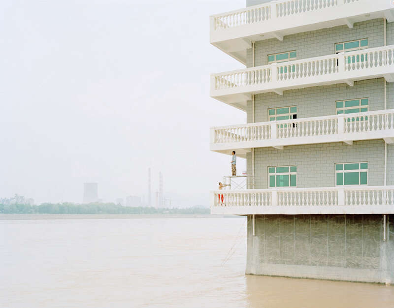 张克纯《粉刷河中的房⼦的⼈,⽢肃》 ,2011,图片来自A4美术馆