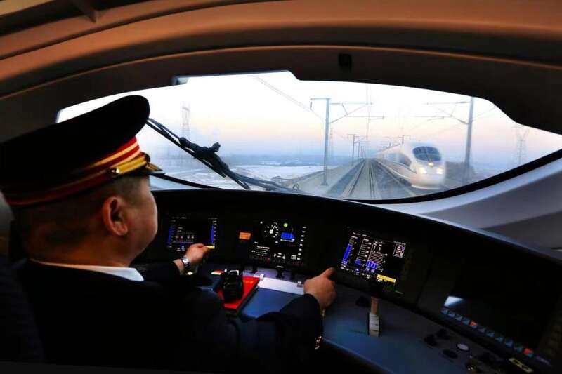司机驾驶高铁列车行驶在哈大高铁线路上。(图片由中国铁路沈阳局集团有限公司提供)
