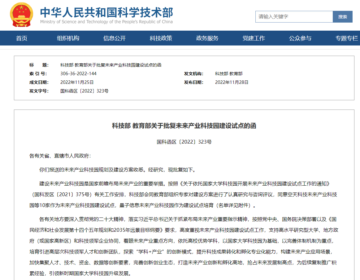 未来产业科技园试点建设由科技部、教育部统一部署,重点支持高水平研究型大学和地方政府(国家高新区)、科技领军企业合作,以国家大学科技园为基础开展试点建设,打造未来产业科技创新和孵化高地,建设未来产业科技园是国家前瞻布局未来产业的重要举措。