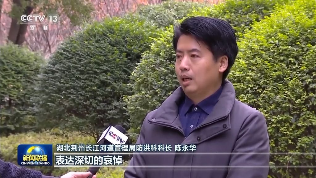 湖北荆州长江河道管理局防洪科科长 陈永华:我们对于江泽民同志的去世,表达深切的哀悼。1998年我们在抗洪一线,在洪峰来临的危急时刻,江泽民同志不顾安危,登上大堤,指挥抗洪斗争,为我们击退洪水带来强大的精神力量。