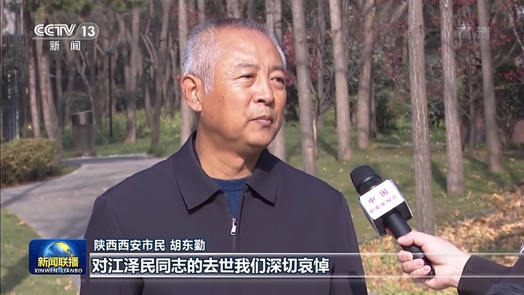 陕西西安市民 胡东勤:对江泽民同志的去世我们深切哀悼,江泽民同志带领全国人民应对了很多困难和挑战,还在我们西部省份实施了西部大开发,民生也改善了,我们深切缅怀他。