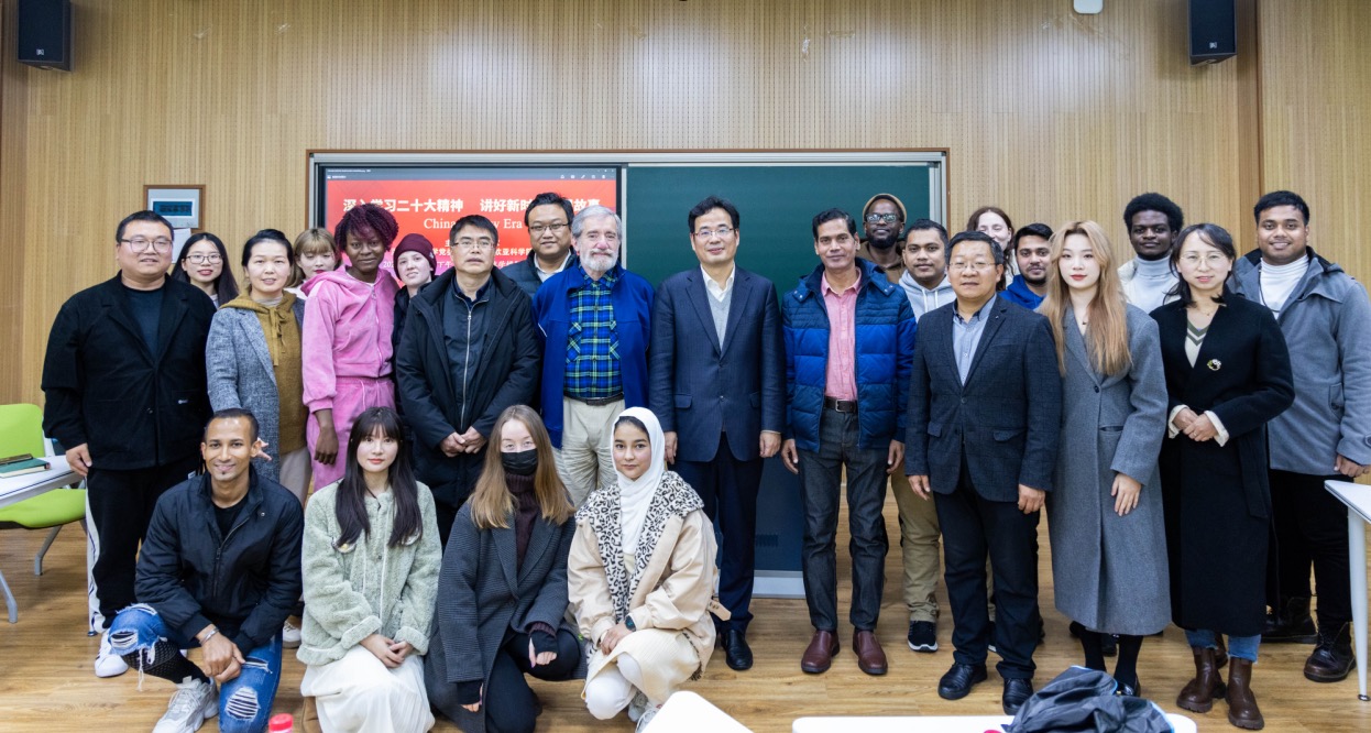 严小军书记指出,通过认真学习党的二十大报告,他更加深刻地意识到高等教育在全面建设社会主义现代化国家奋斗征程中的基础性和战略性支撑作用。严小军书记从世界大学教育的起源及重要性、中国大学教育发展的历程、中国大学教育的2035规划、大学生如何接受教育四个方面,向外籍专家、来华留学生分享了现代大学教育对个人、国家、世界的作用,高等教育不仅仅是服务于国家的经济和发展战略,更是实现高水平科技自立自强的主渠道。在此基础上,严书记全新阐释了教育尤其是大学教育是人类历史和人类文明史上最重大的发现,现已成为脱贫攻坚的“治本之计”,对推动中国式现代化有深远的影响。