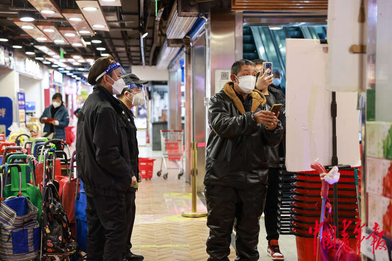 12月6日,北京市朝阳区某商场门口,市民在门前准备扫码。当日,北京核酸检测查验实行新措施,进入商超、商务楼宇及各类公共场所,可不查验核酸检测阴性证明,扫码进入即可。中青报·中青网记者 陈剑/摄