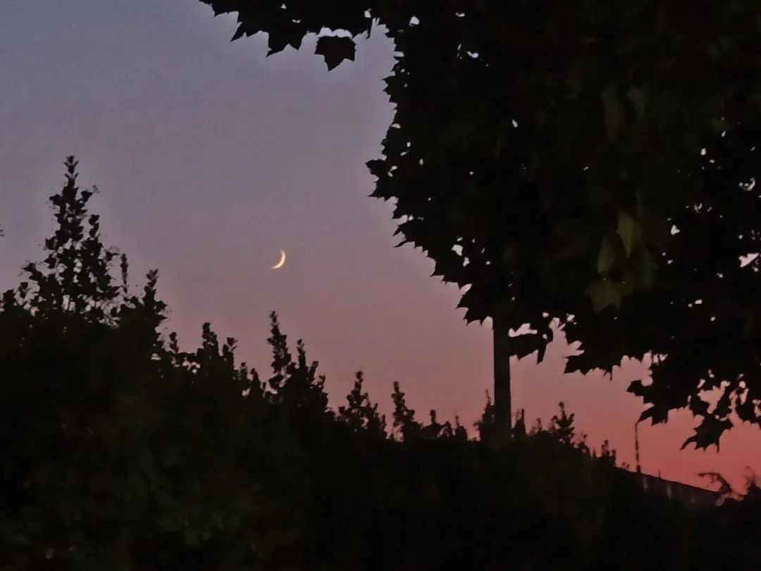 某天从考研自习室出来的时候,一抬头透过树影看见天边由粉至蓝渐变的天色和一弯浅浅的月牙,思绪一下子就回到了珞珈山。