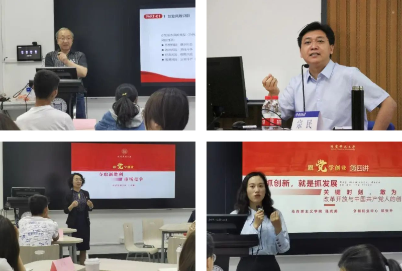 “跟党学创业”课程彻底转变课程构造,融合党史学习、创业管理、心理学等内容,形成了“思政课程”向“课程思政”有效过渡的“北科模式”。全面推进课程思政建设,就是要寓价值观引导于知识传授和能力培养之中,帮助学生塑造正确的世界观、人生观、价值观。“跟党学创业”是创新创业的课程思政一次生动、有意义的探索,课程由创新创业中心与马克思主义学院、经济管理学院等5名教授、3名副教授和4名讲师融合重构、联合授课,融合党史学习、创业管理、心理学等内容,进行多轮科学性论证,最终形成16学时、8个模块的标准课程。
