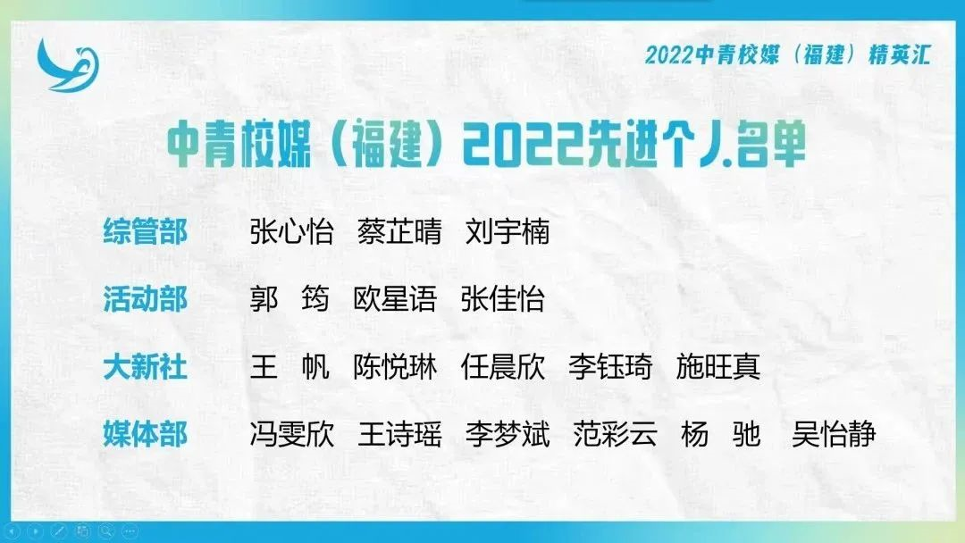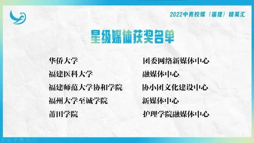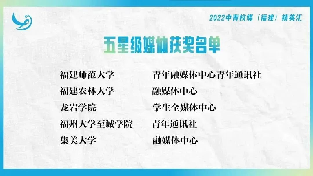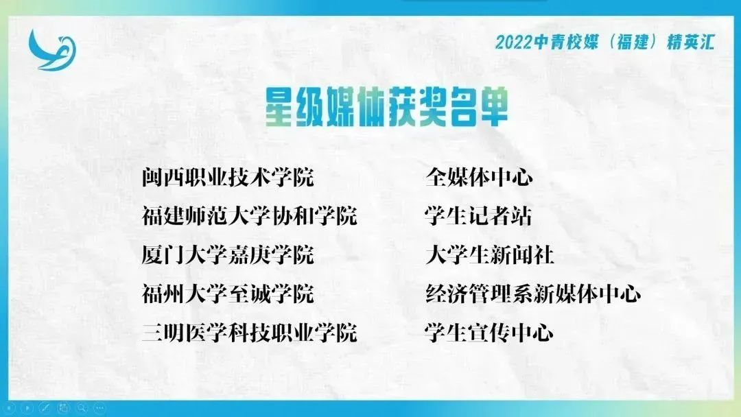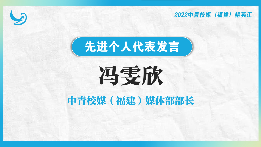 2022年中青校媒(福建)精英汇至此圆满结束,但校媒人的故事还在继续,通过校园媒体这一平台,我们用文字、镜头与声音记录着属于我们的青春故事,探讨如何应对新时代媒体融合,带来的机遇与挑战。