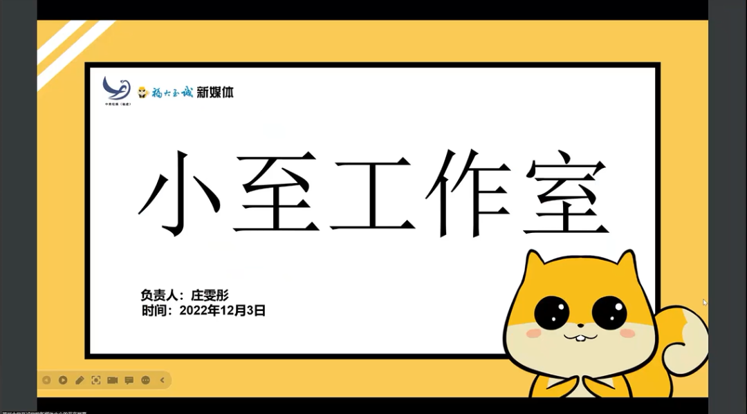 福州大学至诚学院团委青年通讯社和团委新媒体中心向观众们介绍了他们的吉祥物——可爱的小松鼠小至,并讲解了小至颜值飙升成为各系“网红”的历程。关于设计图案方面的分享内容生动有趣,引发参会同学进一步发问与思考。对小至工作室的发展历程的回顾,再现了工作室发展速度之快、发展质量之高。