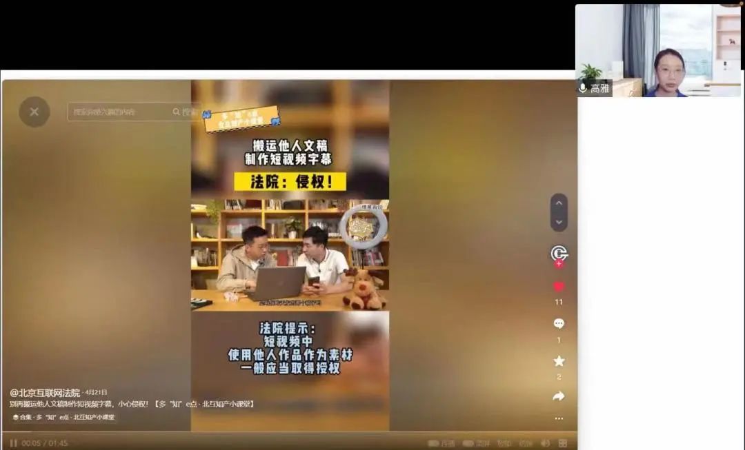 高雅还介绍了典型的侵权形式,包括使用网络上无授权的背景音乐、未经授权使用他人文字作品作为字幕、未经许可将长视频切条成短视频传播等。