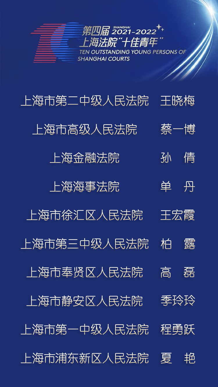 中国青年报客户端讯(高远 中青报·中青网记者 王烨捷)近日,第四届上海法院“十佳青年”现场评选会在上海市高级人民法院(以下简称上海高院)举行,来自全市三级法院的23位候选人参加评选。最终,来自上海市第二中级人民法院(以下简称上海二中院)的法官王晓梅等10位候选人荣获第四届上海法院“十佳青年”称号,其余13位荣获“十佳青年”提名奖。