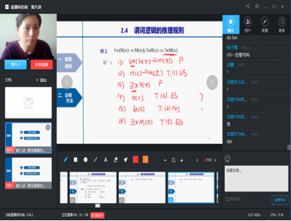 为提高线上课程教学效率,谢琨打破“课堂只有一位老师”的传统授课模式,设计了“双师双侧”的授课模式。即对相同时段的授课班级进行合并,每节课两位教师同时进入网课直播,由一位教师主讲,一位教师主教,强强联手。两位老师的工作量1+1小于2,课堂效率却实现了1+1大于2的效果。在首届全国高校教师教学创新大赛中,谢琨协同团队以离散数学课程参赛,充分展示先进教学理念与创新成果,一路过关斩将,以优异的表现一举获得全国二等奖的好成绩。