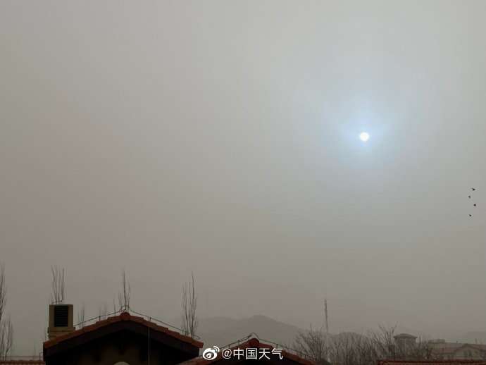 据中国天气网消息,今天北京沙尘天气来袭,下午14时左右仍处于严重污染状态,天空出现“蓝太阳”。据首席气象分析师介绍,由于沙尘里的颗粒物散射和吸收了波长更长的红光,导致红光减少,所以太阳看起来是蓝色的。