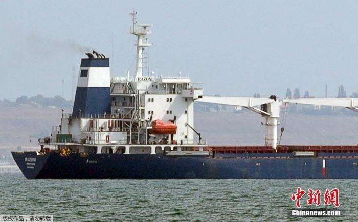 资料图:黑海港口农产品外运协议签订后,首艘载有乌克兰粮食的船只从敖德萨港口出发。