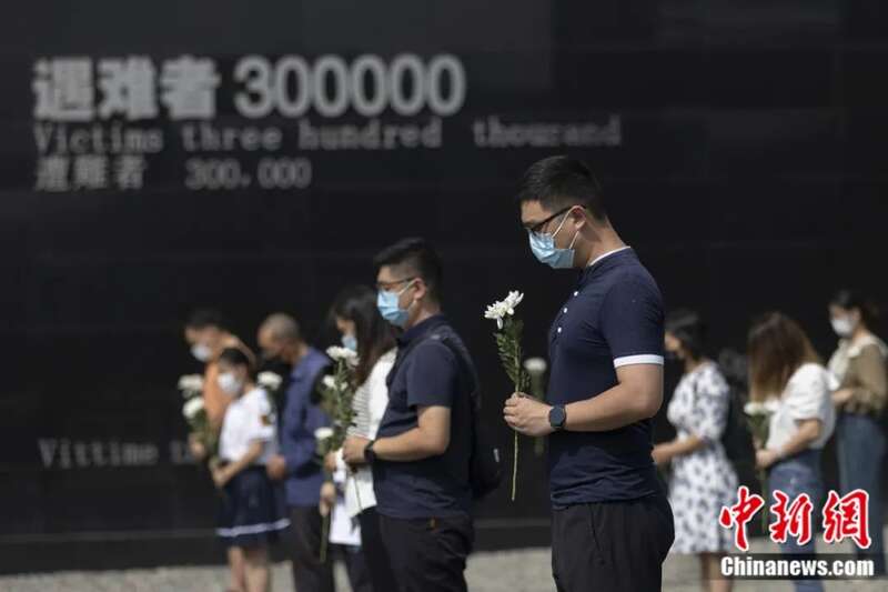 9月18日,民众手持鲜花在侵华日军南京大屠杀遇难同胞纪念馆默哀,缅怀遇难同胞。泱波 摄