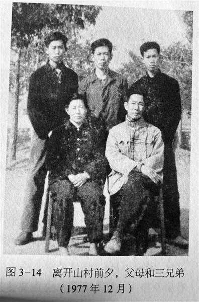 陈平原离开山村前夕,父母和三兄弟(1977年12月)