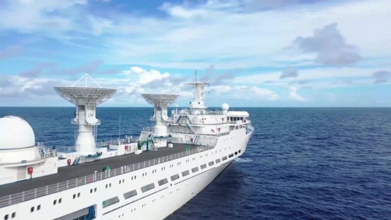 2022年12月13日上午,远洋归来的远望7号船结束了为期55天的航程,停靠在中国卫星海上测控部码头。