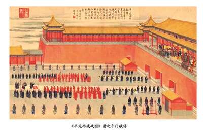 夏凡指着一张乾隆时期的《平定西域战图》介绍说,这是清代宫廷画家描绘的“午门献俘”的真实场景,每次重大战役结束,都会把擒获的敌军首领带回,在皇宫正门前接受皇帝的亲自宣判,或关押或释放,抑或直接杀掉,这也是中国历代王朝秉承千年的仪制规则。但即使杀掉,也不会在午门前进行,这又牵涉到另一个知识点,也是民间关于午门的一个最大谣言,即“推出午门斩首”,午门外从来不会“斩首”,最重的刑罚也仅限于“杖责”,即“打板子”,当然这种刑罚也会置人于死地。明朝嘉靖皇帝就曾因“大礼仪事件”把134名官员推出午门杖责,当场打死了16位,而在幸存的官员中有一个叫杨慎的人,这个名字大家可能听着不熟,但他却是明朝三大才子之一,他创作的一首词至今脍炙人口、广为流传,就是《三国演义》的开篇词:“滚滚长江东逝水,浪花淘尽英雄……”