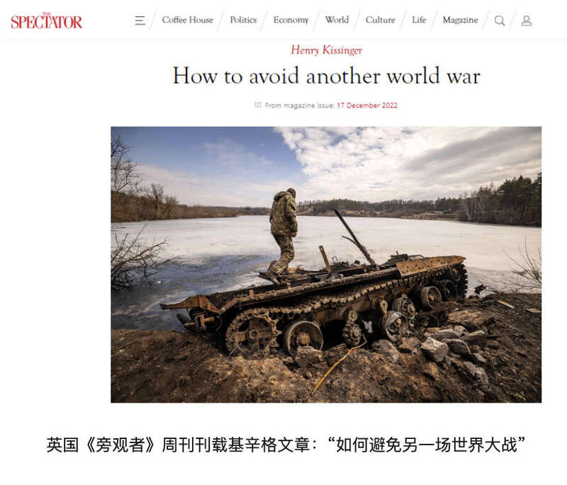 这篇题为“如何避免另一场世界大战”的文章刊登于英国《旁观者》周刊。塔斯社称,基辛格先是在文章中写道,冬天迫使对乌克兰的大规模军事行动暂停,这与1916年8月的情况类似,当时,第一次世界大战的主要西方参战国都寻求美国的调停以和平结束冲突。他说,但当时的美国总统伍德罗·威尔逊面对即将到来的美国总统选举,错过了通过外交手段结束第一次世界大战的机会。