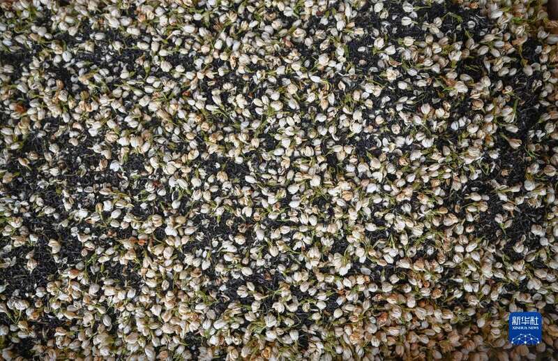 12月16日,在福州茉莉花茶制茶工坊,福州茉莉花茶传统窨制工艺大师傅天甫进行制茶的第七道工序“提”。“提”是用少量优质茉莉花再复窨一次,主要为了增强花茶香气的鲜度。