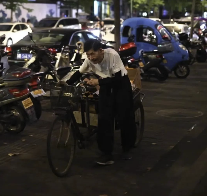 入夜,他总推着一辆三轮车