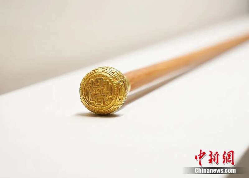 长约1.4米的金首铜鐏权杖。潘旭临 摄