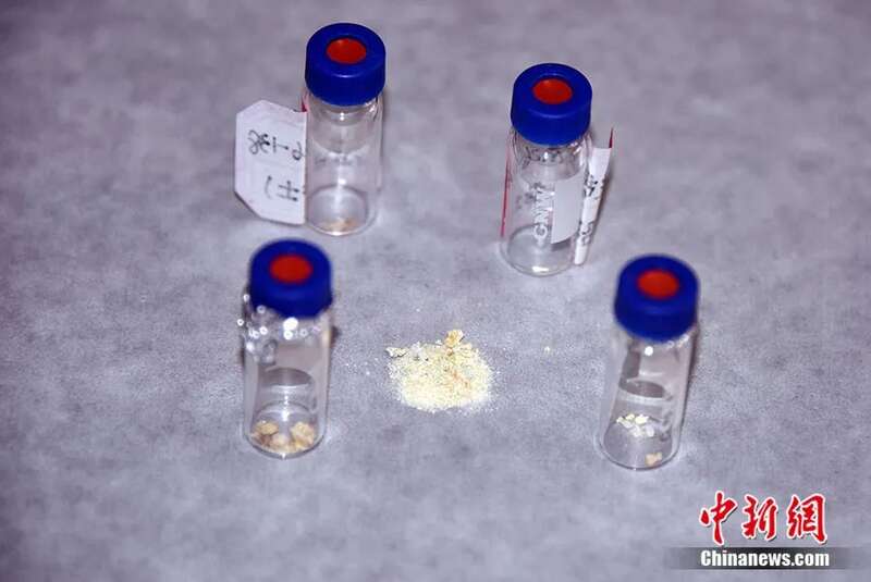 陕西梁带村遗址出土的、用于研究的人工合成铅白化妆品遗存样品。孙自法 摄