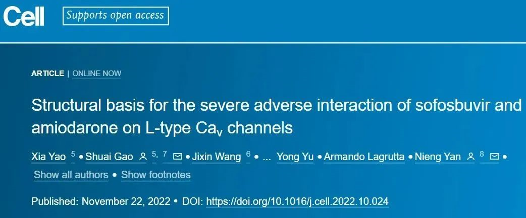 这一转,真的迎来了转机。后续许多研究成果,以及前段时间我作为第一作者在《细胞》上新发表的题为《索非布韦和胺碘酮药物联用阻断L型钙离子通道引起严重不良作用的分子机制》的文章,都是有关钙离子通道的。